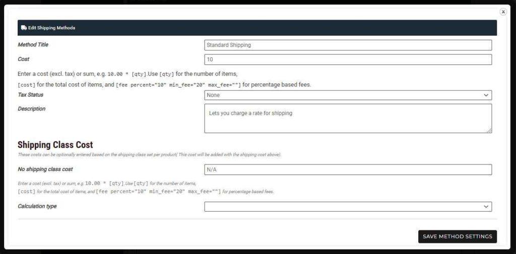 NOTE: Make sure you select a shipping method otherwise customers cannot purchase your products! Check out the Shipping section below for more info.