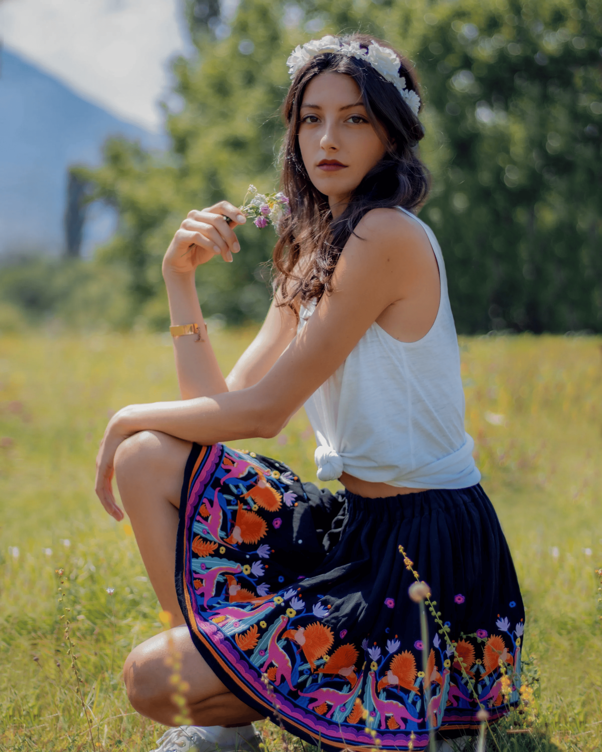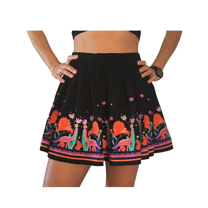 Step into nostalgia with Mintchi’s ‘Back Then’ collection! This limited-time offer presents our fun and trendy transeasonal skirt, adorned with unique dinosaur embroidery that wraps around the hem. Its stitched down encased elastic ensures a comfortable fit without any twisting at the waist. The skirt measures 40cm in length and can be worn at the waist or hip, depending on your preference.Â