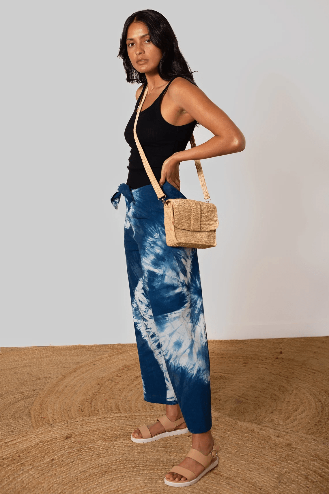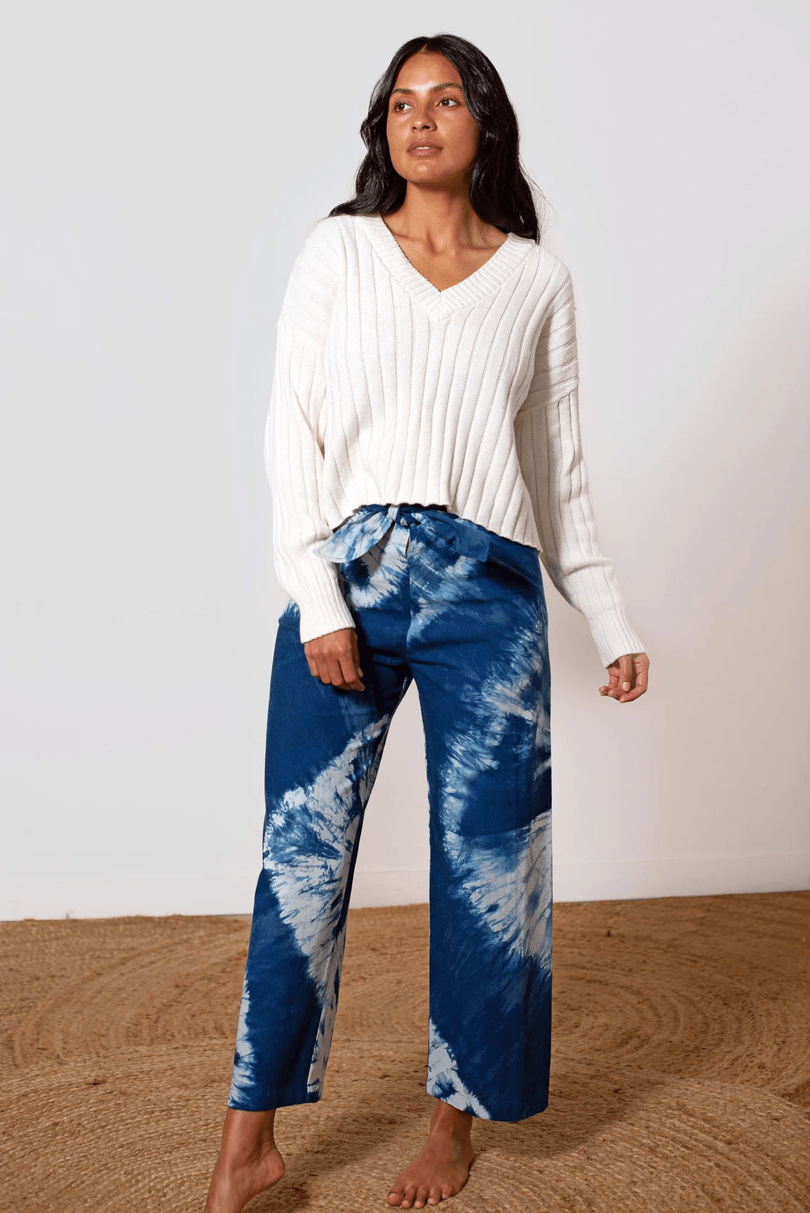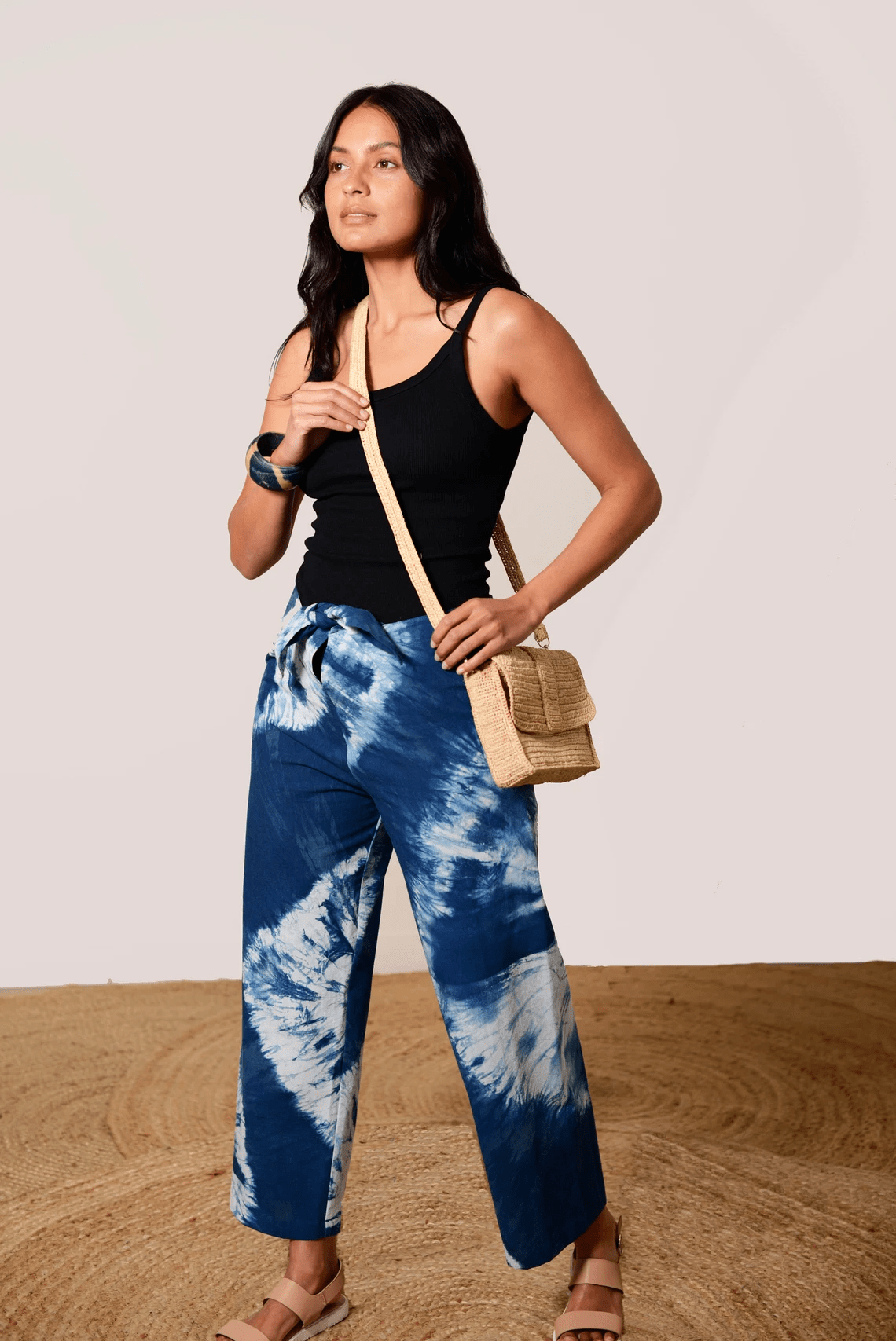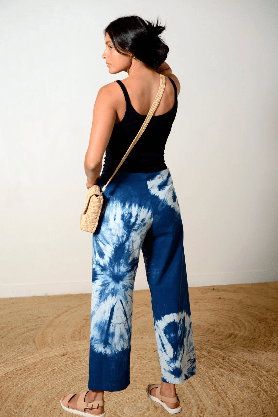 Ethically made they have been hand-dyed with Indigo using a knotted Shibori technique which creates these beautiful ‘Dandelion’ like flowers over the fabric.Â