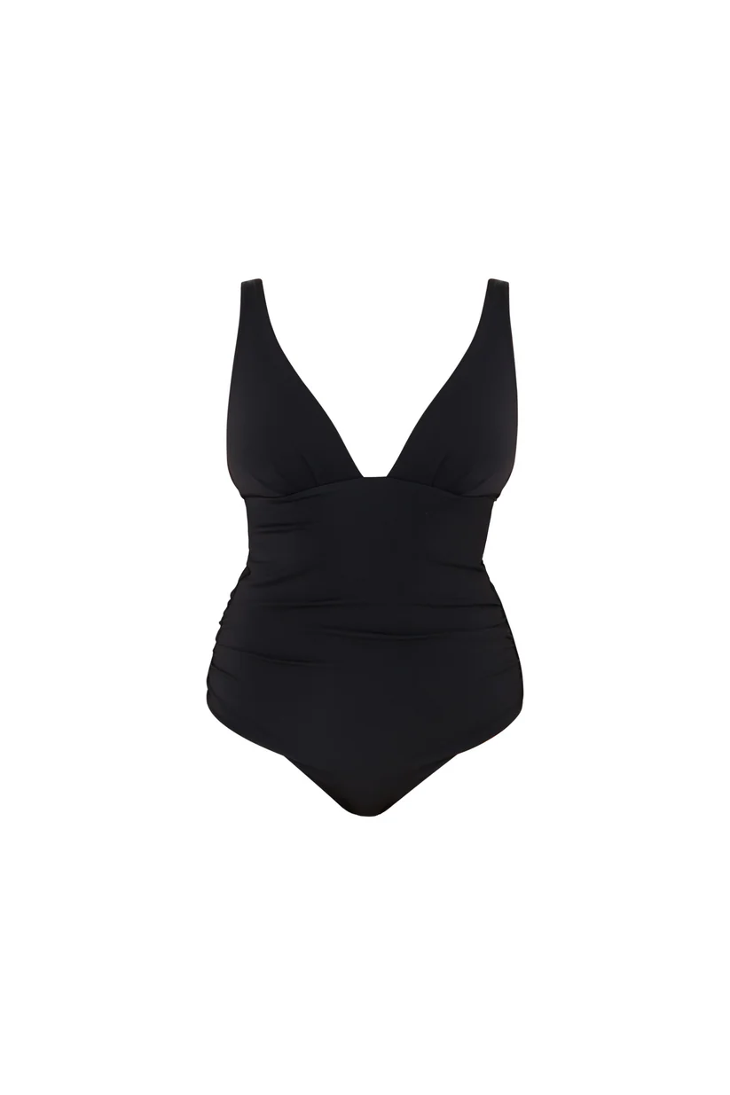This swimsuit will glide along your body rather than digging in with its smooth seamless construction and subtle side ruching to create the most flattering silhouette.Â