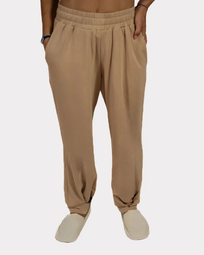 This light Tracksuit Pant is made from the most buttery soft bamboo fleece – making them the comfiest pair of pants. The stunning box pleat design detail just above the ankle, gives our tracksuit pants a very elevated look, more like dress slacks than trackies.Â